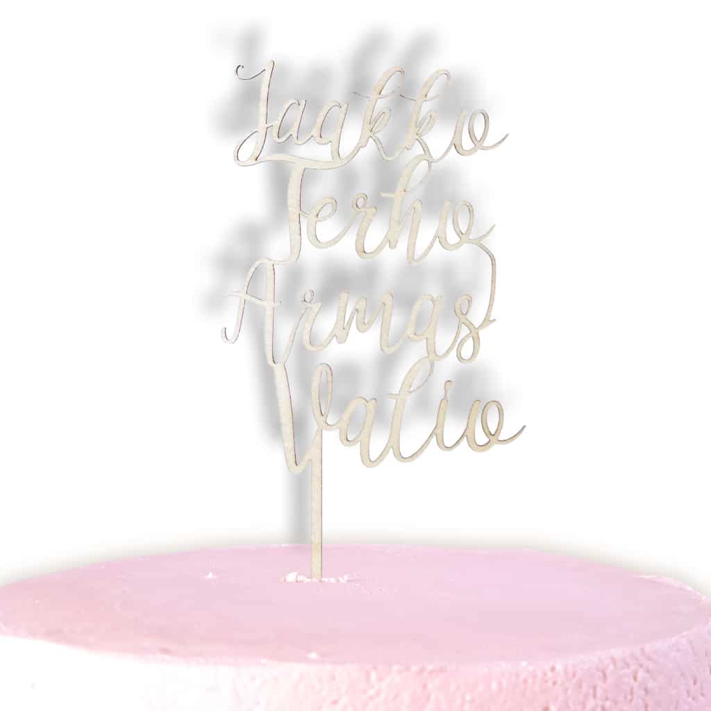 Yksilölliset suomalaisesta puusta valmistetut kakkukyltit viimeistelevät juhlapäivän tunnelman. Valikoimasta löydät sopivat kakkukyltit mm. häihin, syntymäpäiville, ristiäisiin, nimiäisiin kun baby showereillekin!
