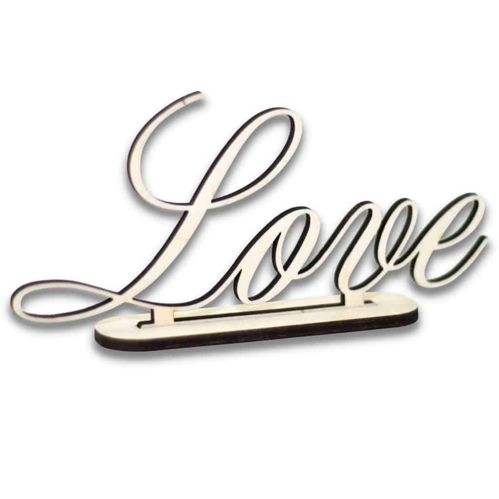“Love” -pöytäkoriste jalustalla